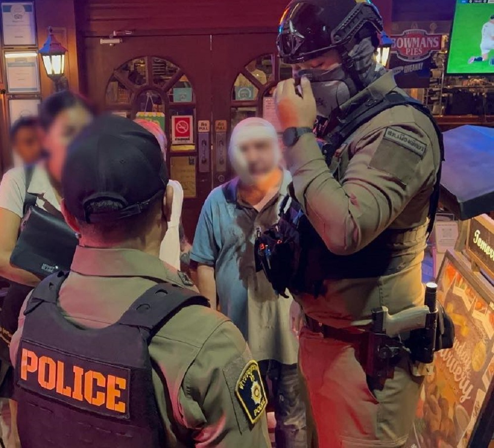 Emergency responders from the Sawang Boriboon Rescue Foundation and officers from Pattaya City Police arrived after reports of an assault at the venue in Pattaya.