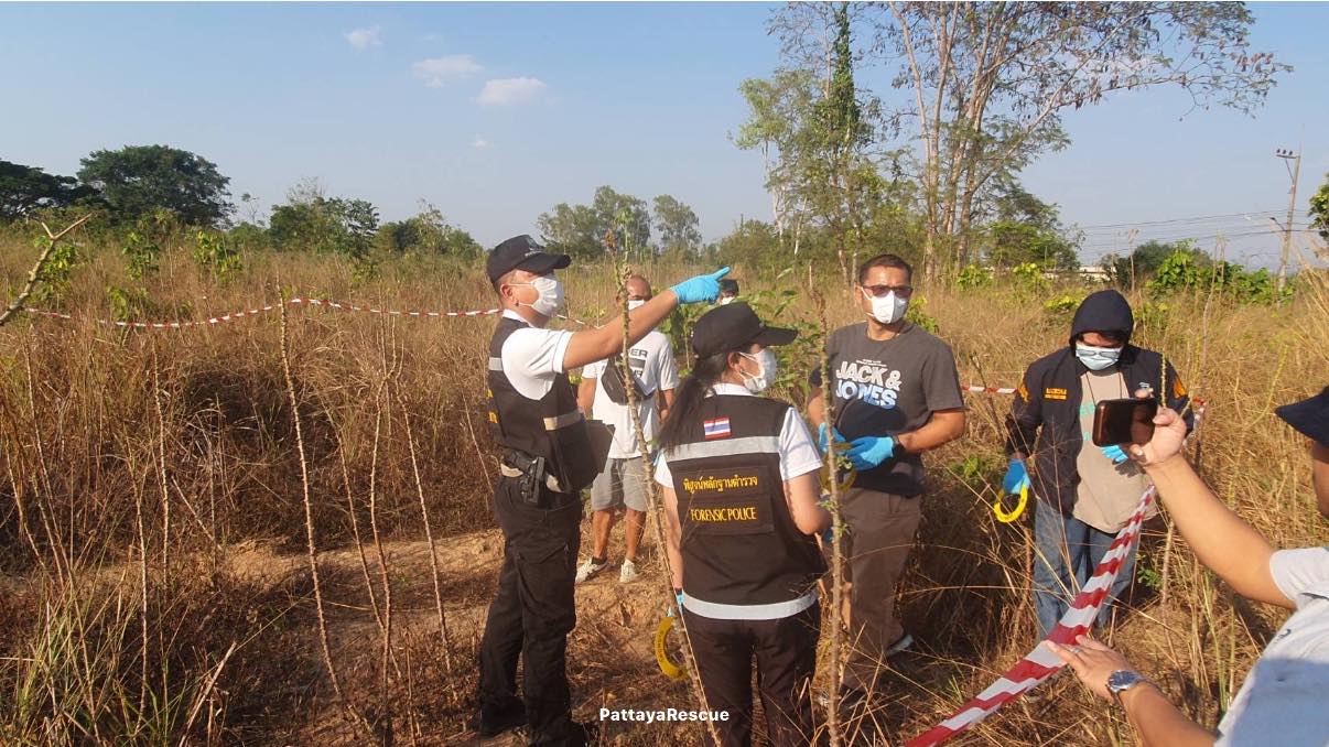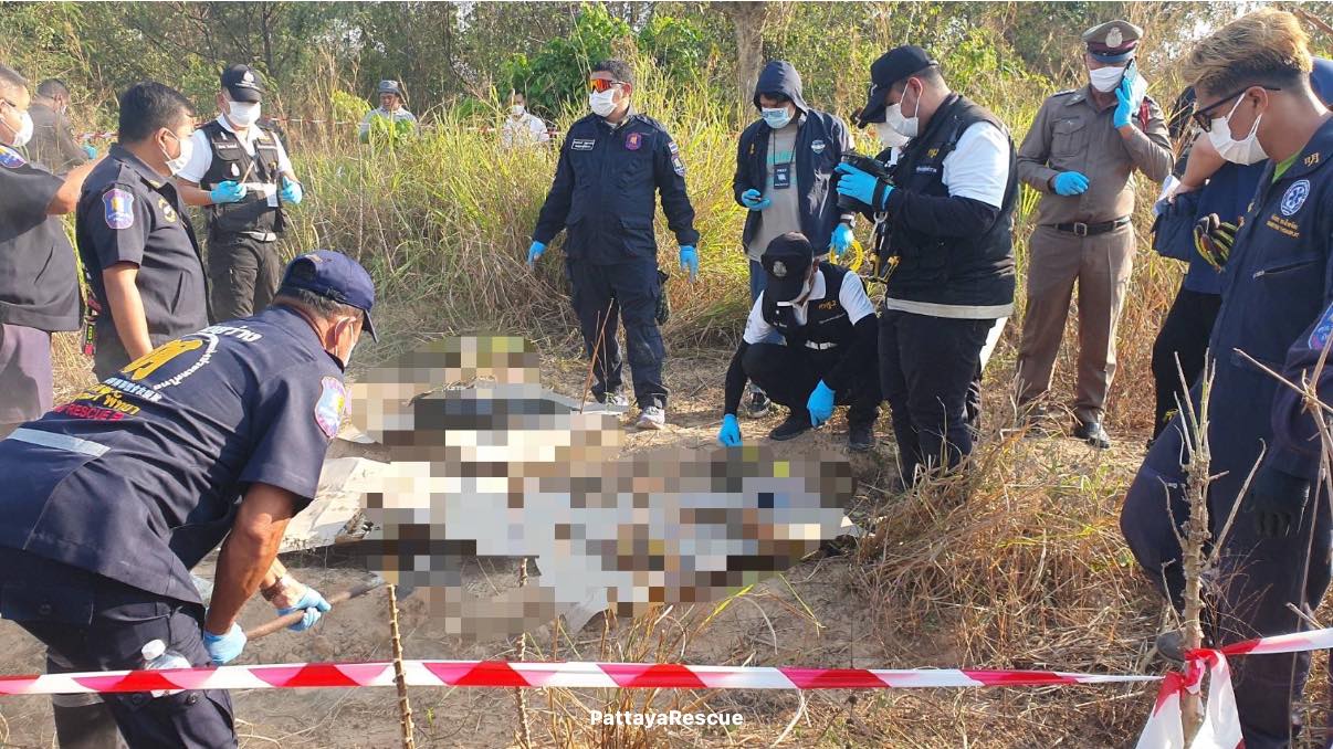 Police located human remains on vacant land in Pattaya near a pond. The body was cut into pieces and buried in five locations. Clothing at the scene matched what the victim wore before he disappeared.