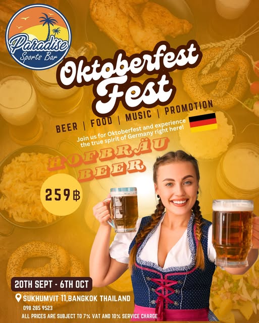 Oktoberfest in Bangkok is happening now. Whether you’re in Sukhumvit, Phattanakan, or Samut Prakan, there’s a spot waiting for you. Grab your friends, raise your steins, and enjoy the festivities. Prost!
