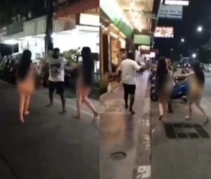 Pattaya Beach Road, March 5, 2026. A Pattaya transgender sex worker incident caused a public disturbance early Thursday morning when two naked transgender sex workers chased an Indian tourist along the beachfront road while demanding payment for alleged services.