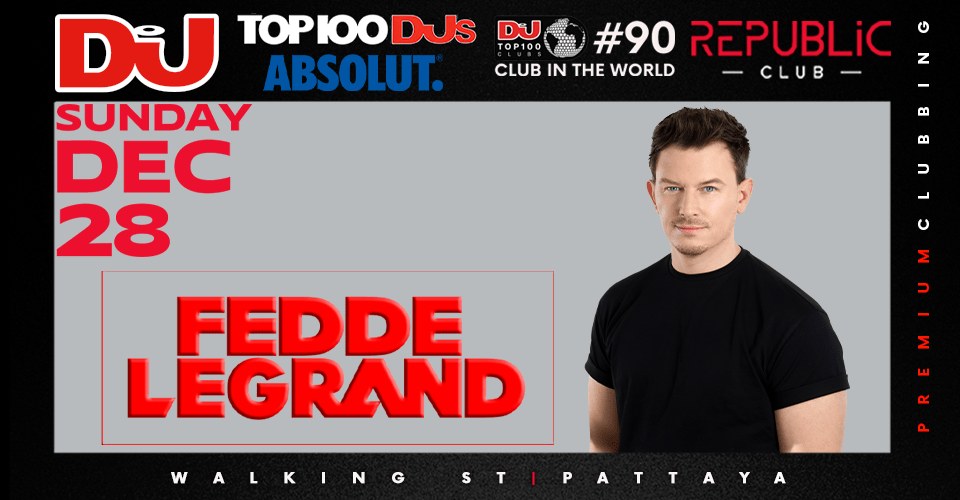 On Sunday, December 28th, Republic Club Pattaya hosts one of house music’s most respected names. Fedde Le Grand ranks #84 in the DJ Mag Top 100 for 2025. The venue ranks #90 Best Club in the World.