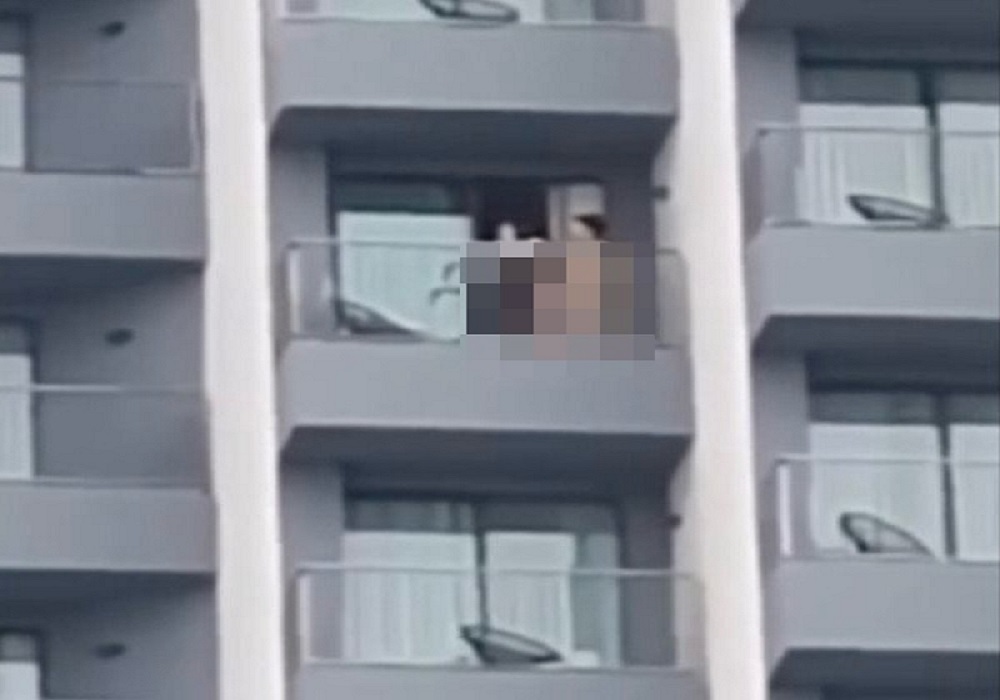Local media received a complaint along with a video clip showing a man and woman, whose nationalities are unknown, involved in a sexual act on a balcony of the building’s upper floors. The footage spread quickly online and prompted concern among residents.